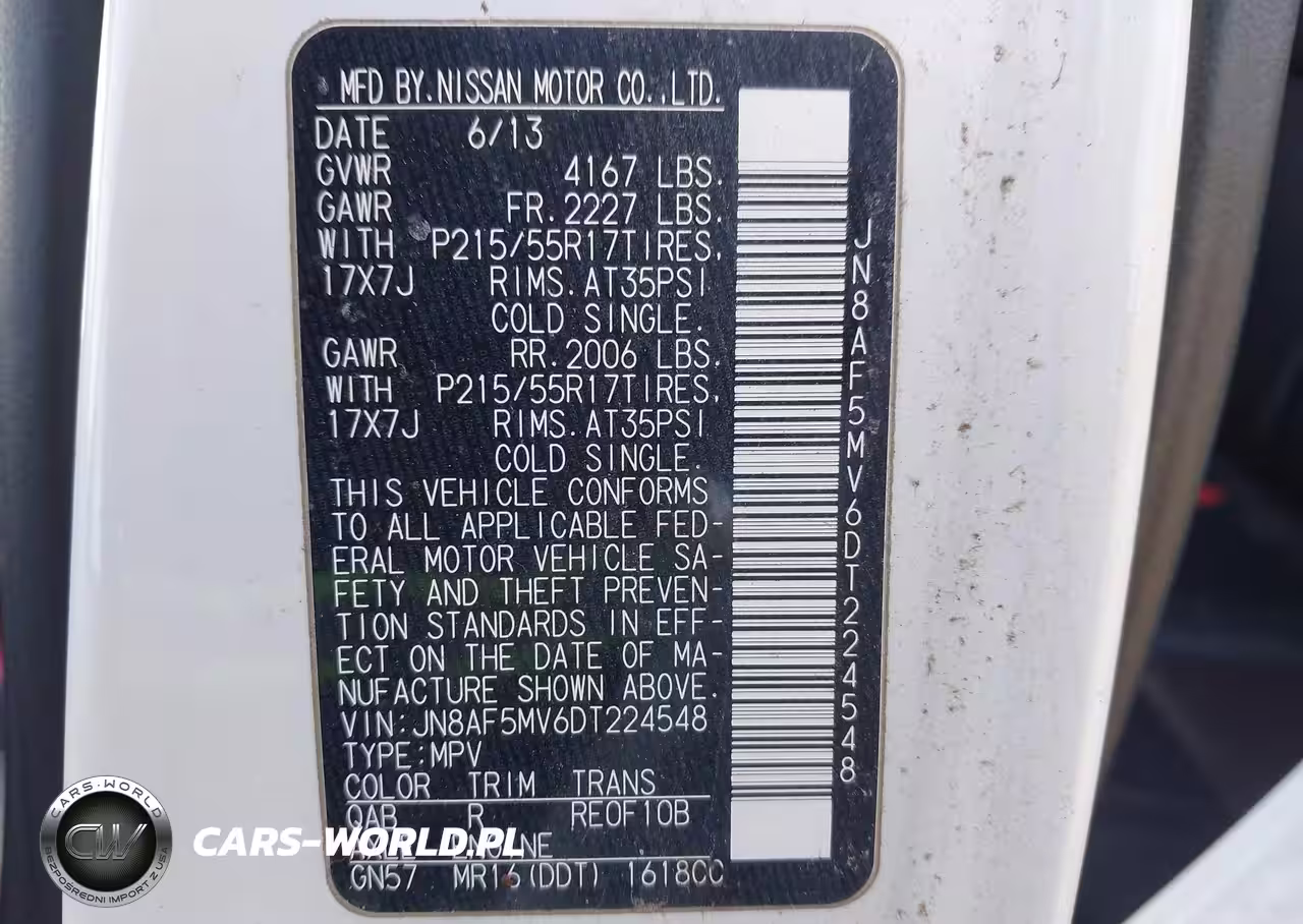 IAAI Nr: I-44719691 VIN: JN8AF5MV6DT224548 Port: Elizabeth, NJ
