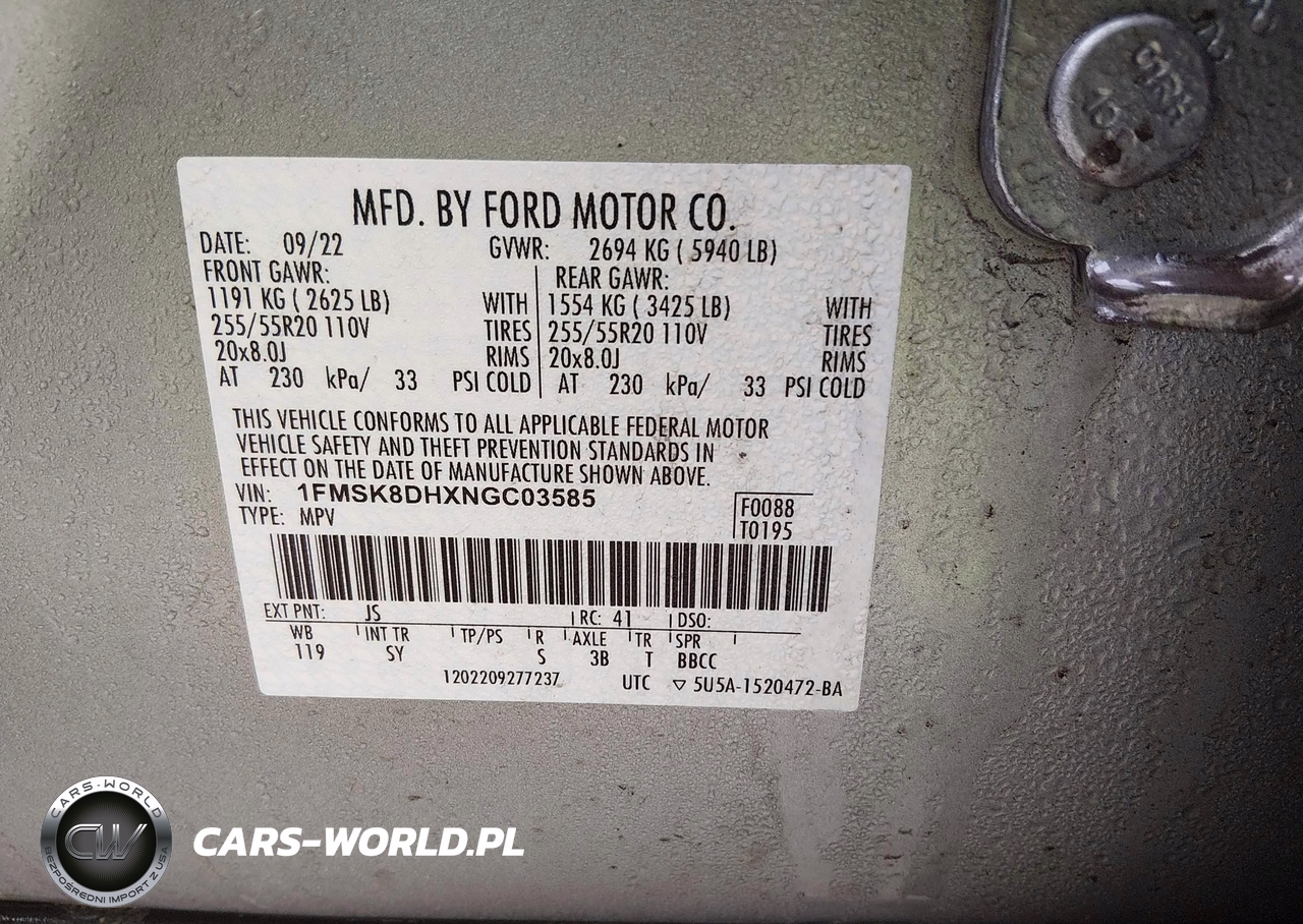 IAAI Nr: I-44720160 VIN: 1FMSK8DHXNGC03585 Port: Indianapolis, IN