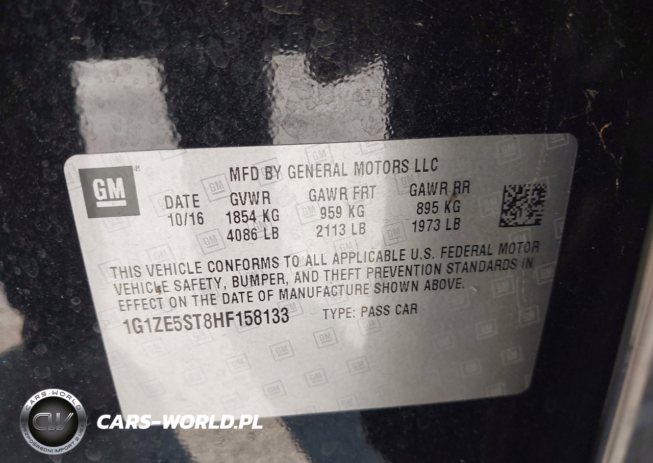 IAAI Nr: I-44720586 VIN: 1G1ZE5ST8HF158133 Port: Elizabeth, NJ
