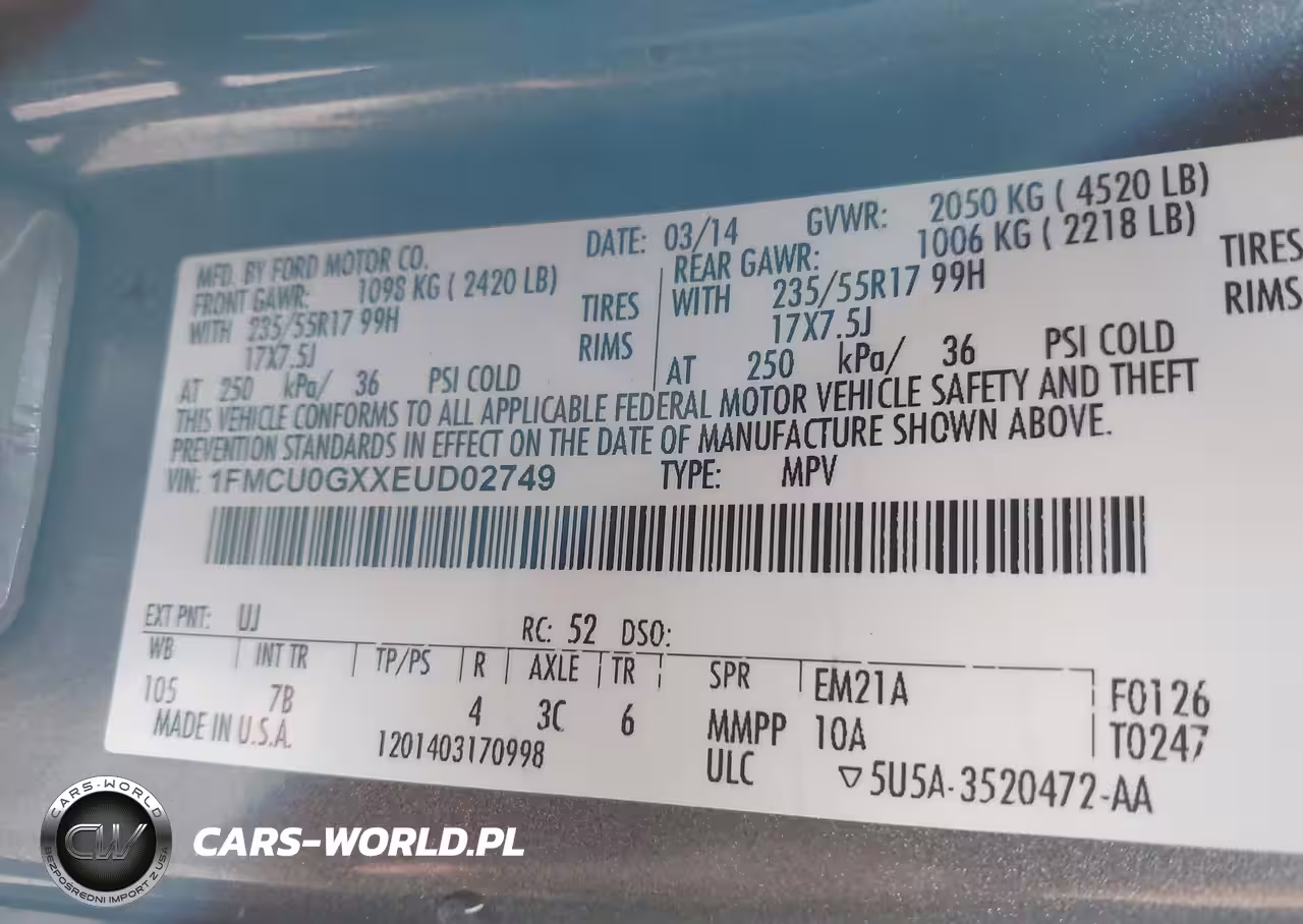 IAAI Nr: I-44721055 VIN: 1FMCU0GXXEUD02749 Port: Elizabeth, NJ