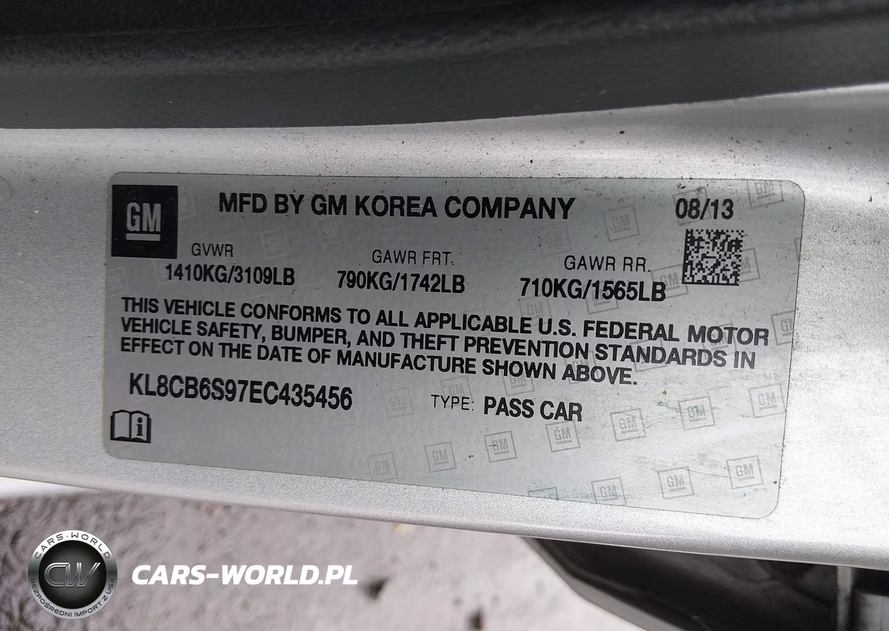 IAAI Nr: I-44722382 VIN: KL8CB6S97EC435456 Port: Elizabeth, NJ
