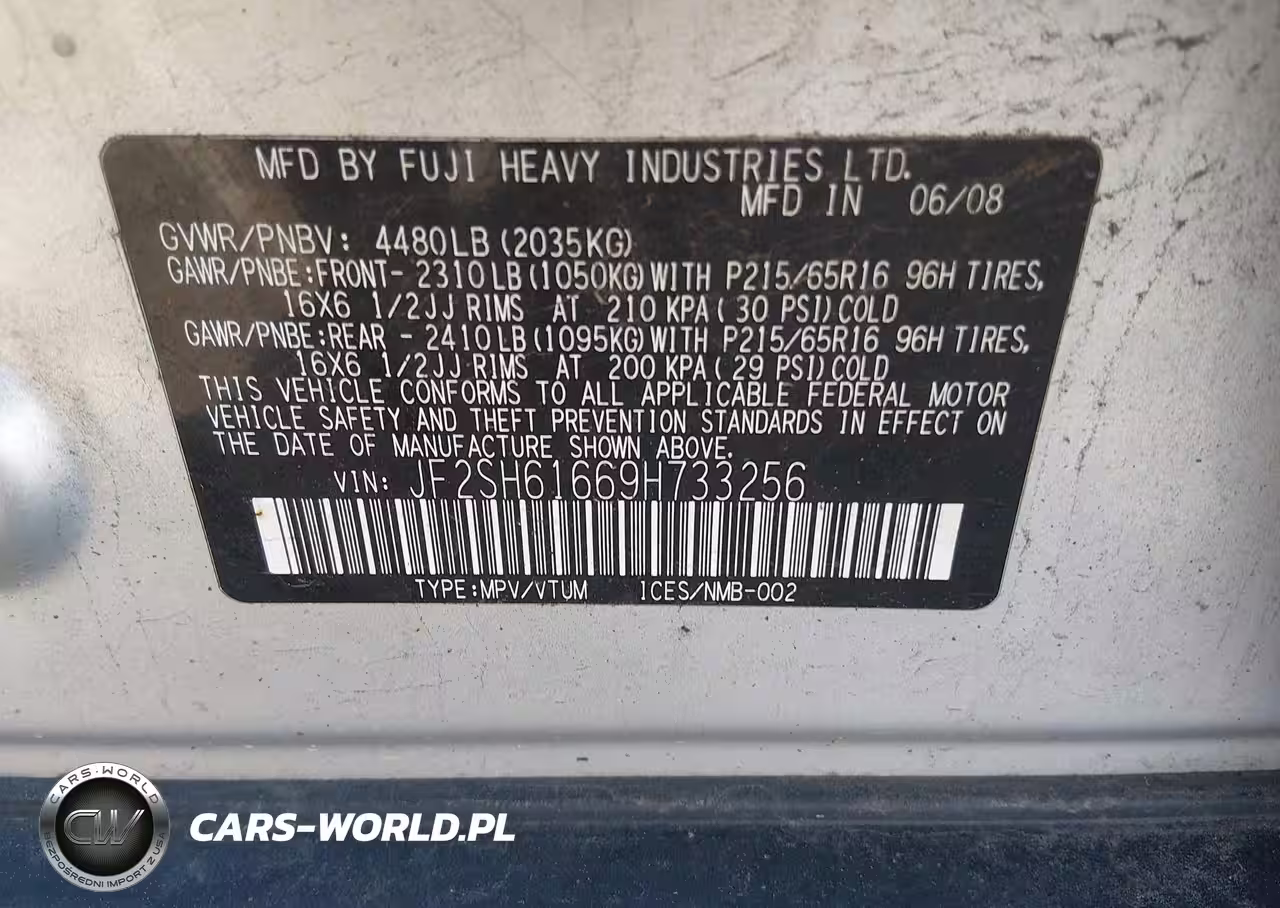 IAAI Nr: I-44722919 VIN: JF2SH61669H733256 Port: Los Angeles, CA