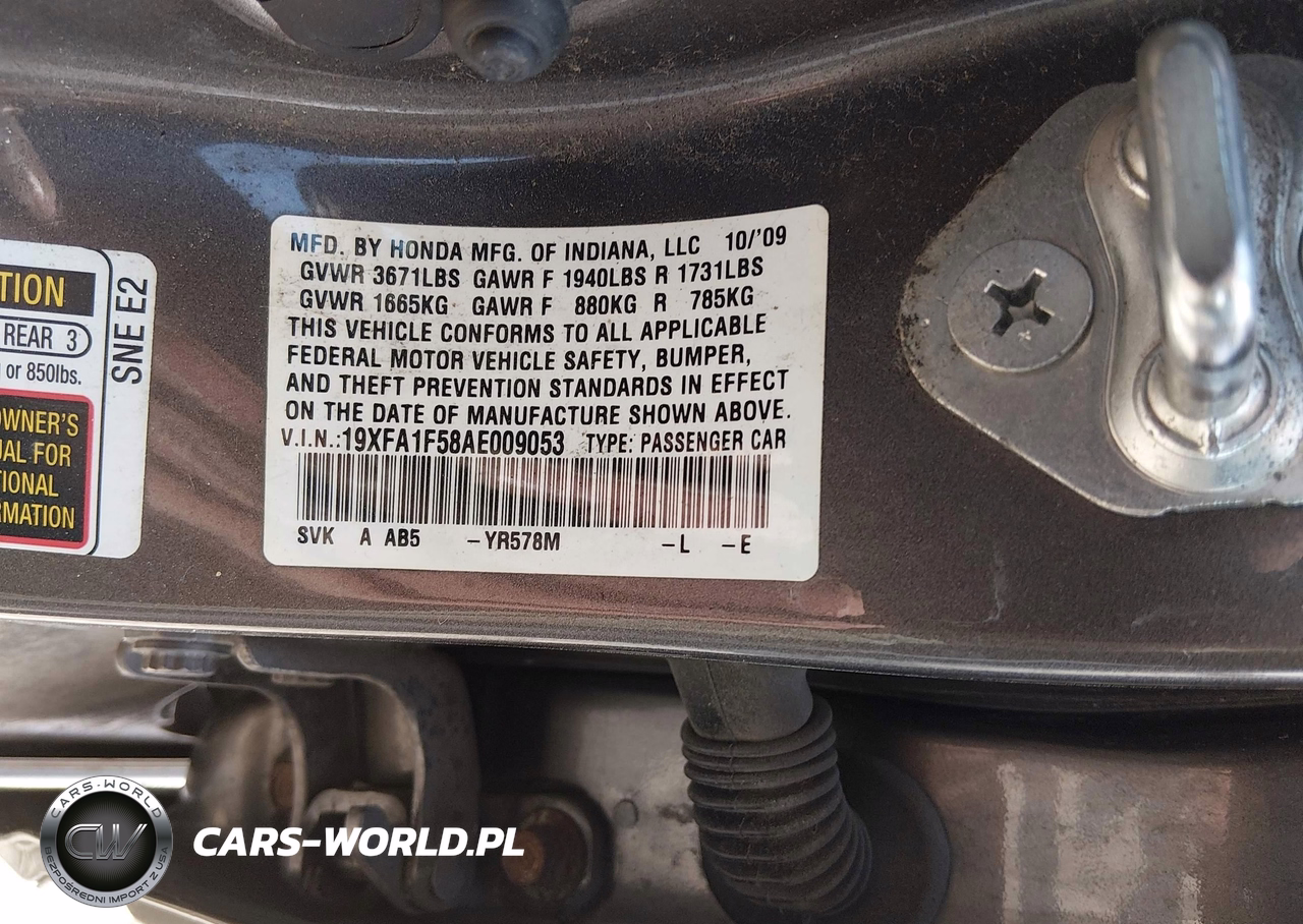 IAAI Nr: I-44723022 VIN: 19XFA1F58AE009053 Port: Indianapolis, IN