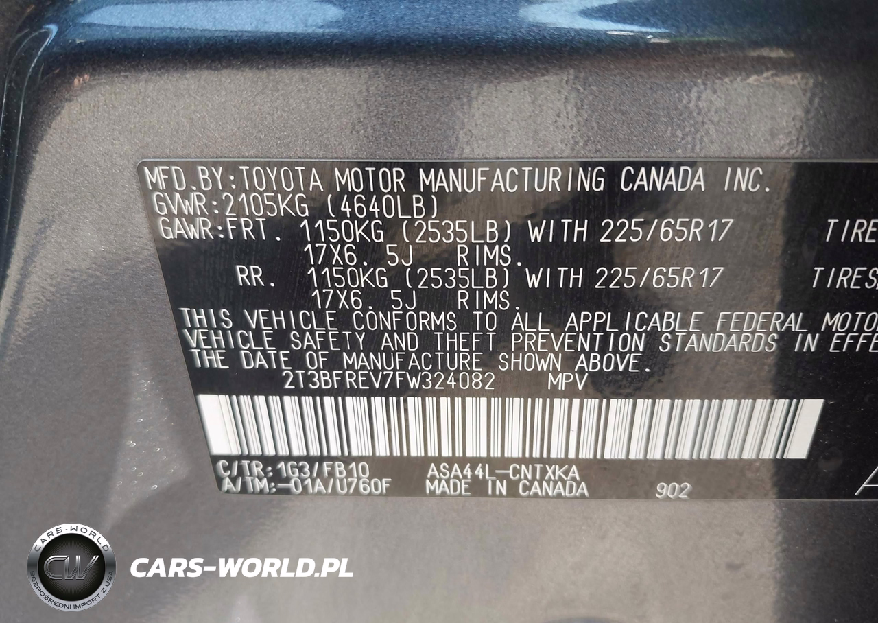 IAAI Nr: I-44723590 VIN: 2T3BFREV7FW324082 Port: Elizabeth, NJ