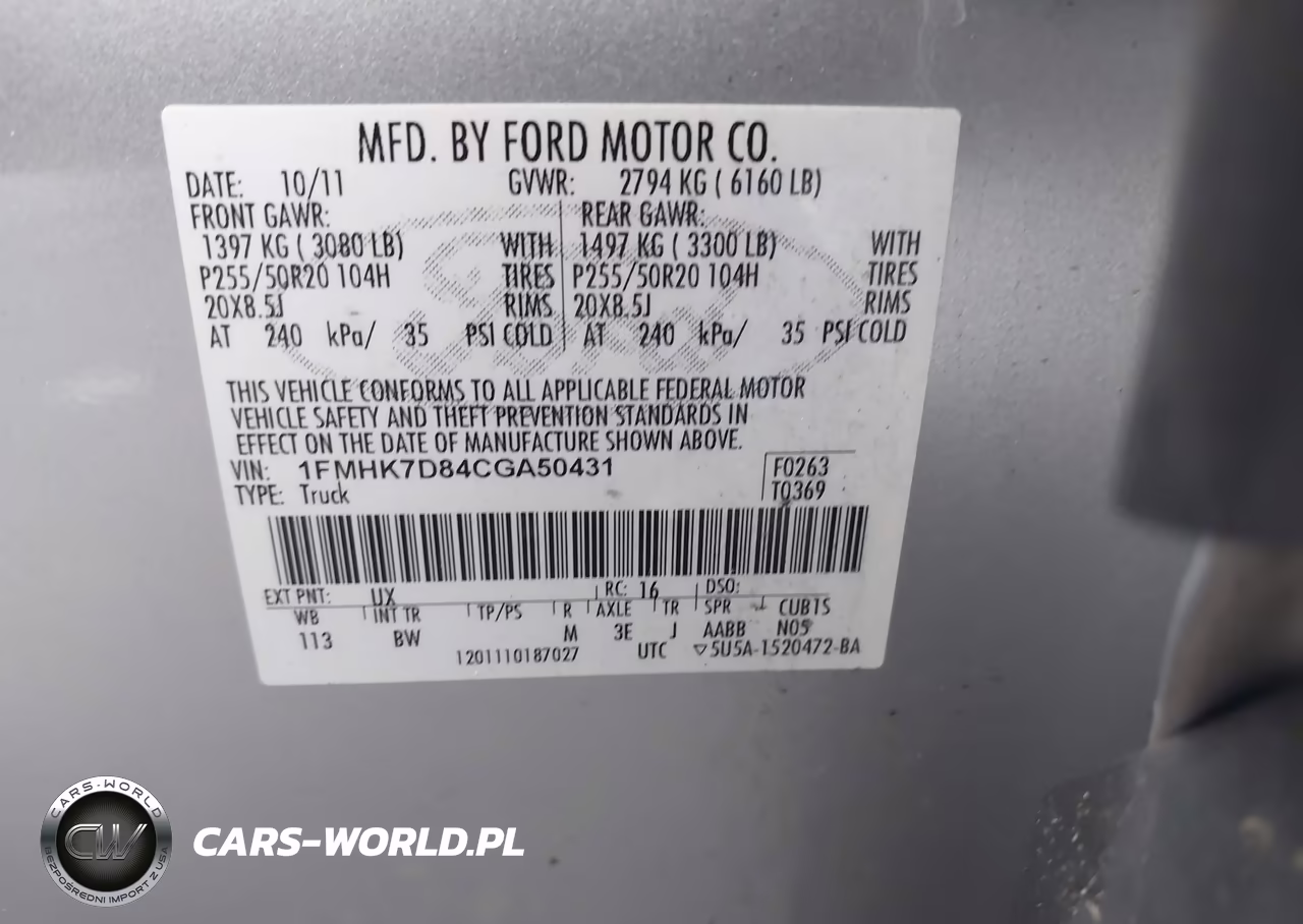 IAAI Nr: I-44723605 VIN: 1FMHK7D84CGA50431 Port: Elizabeth, NJ
