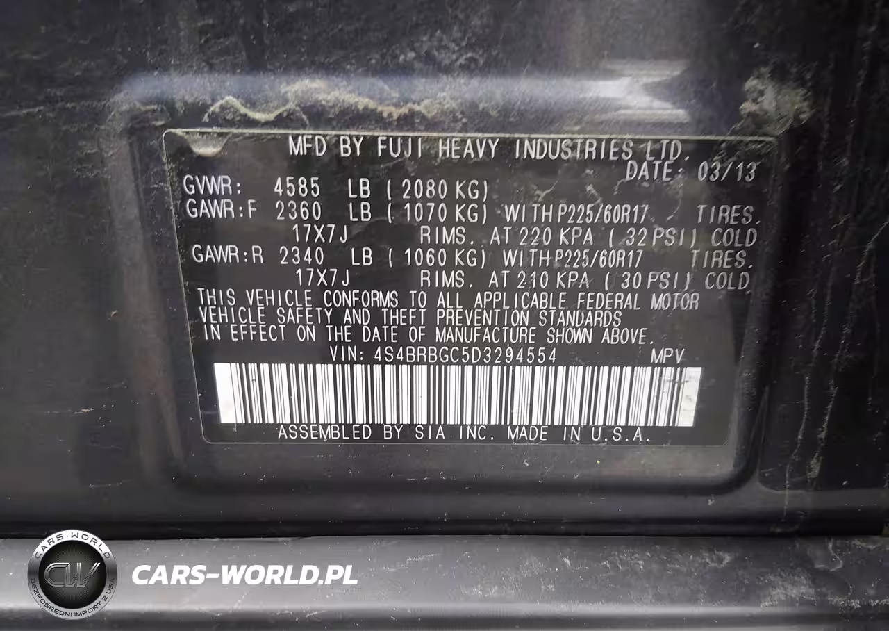IAAI Nr: I-44723953 VIN: 4S4BRBGC5D3294554 Port: Elizabeth, NJ