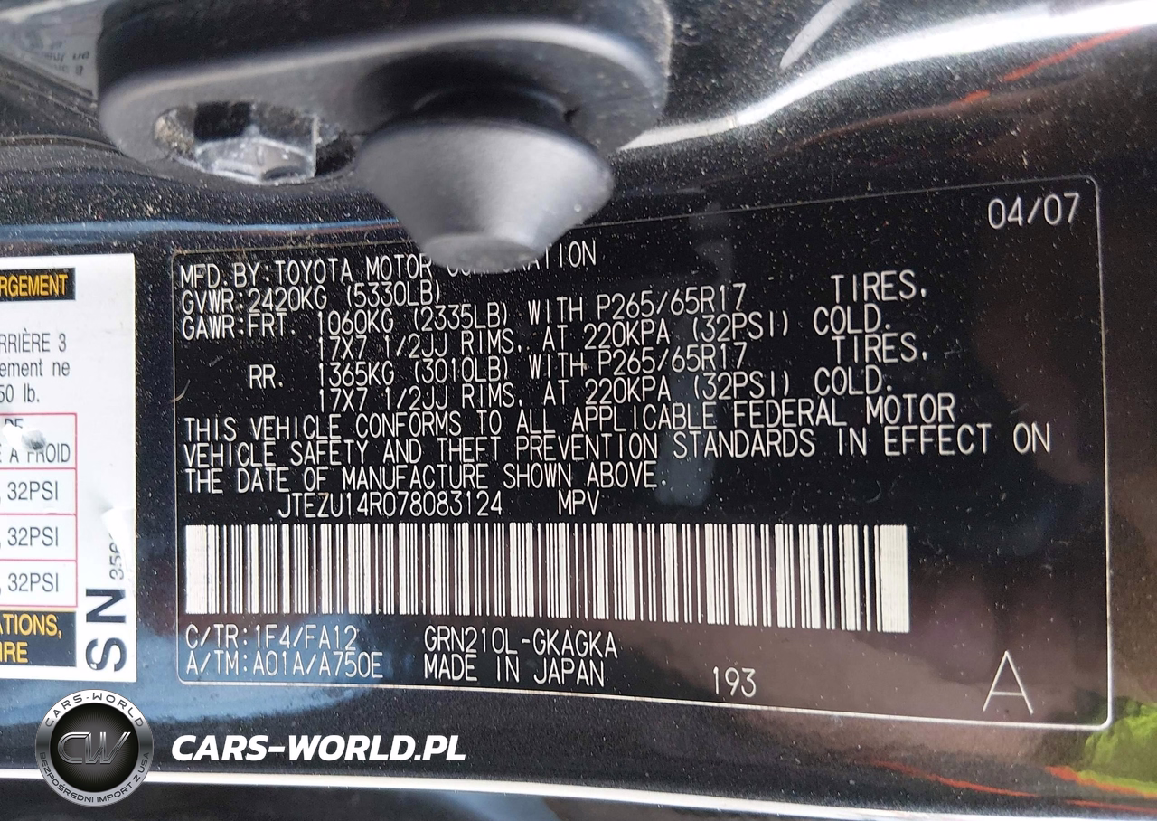 IAAI Nr: I-44724524 VIN: JTEZU14R078083124 Port: Savannah, GA