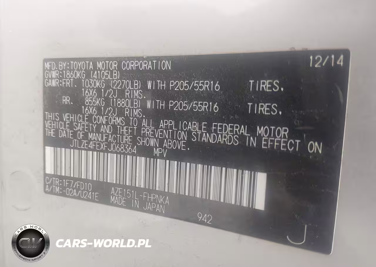 IAAI Nr: I-44725283 VIN: JTLZE4FEXFJ068364 Port: Elizabeth, NJ