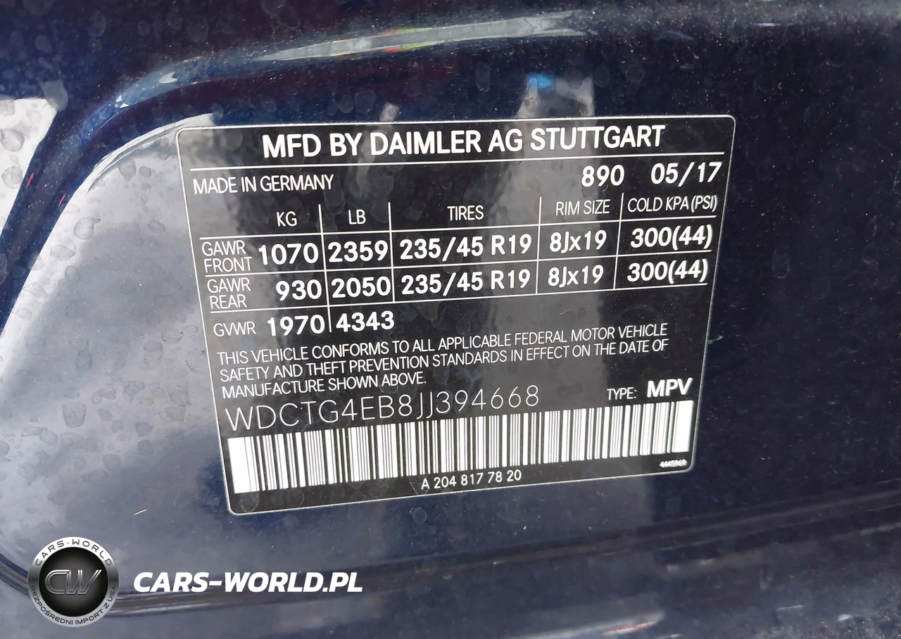 IAAI Nr: I-44725566 VIN: WDCTG4EB8JJ394668 Port: Savannah, GA