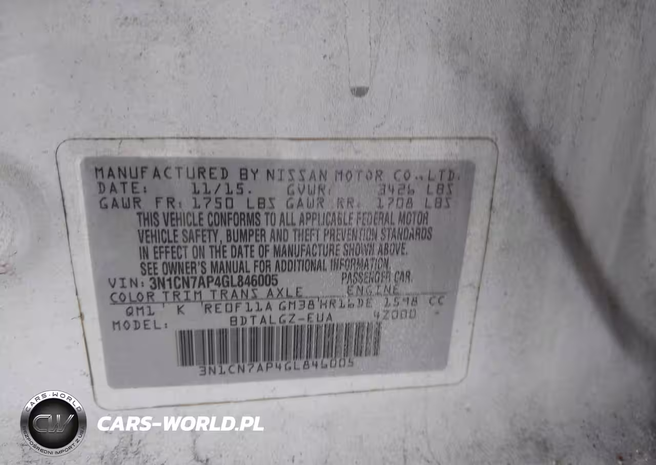 IAAI Nr: I-44726048 VIN: 3N1CN7AP4GL846005 Port: Savannah, GA