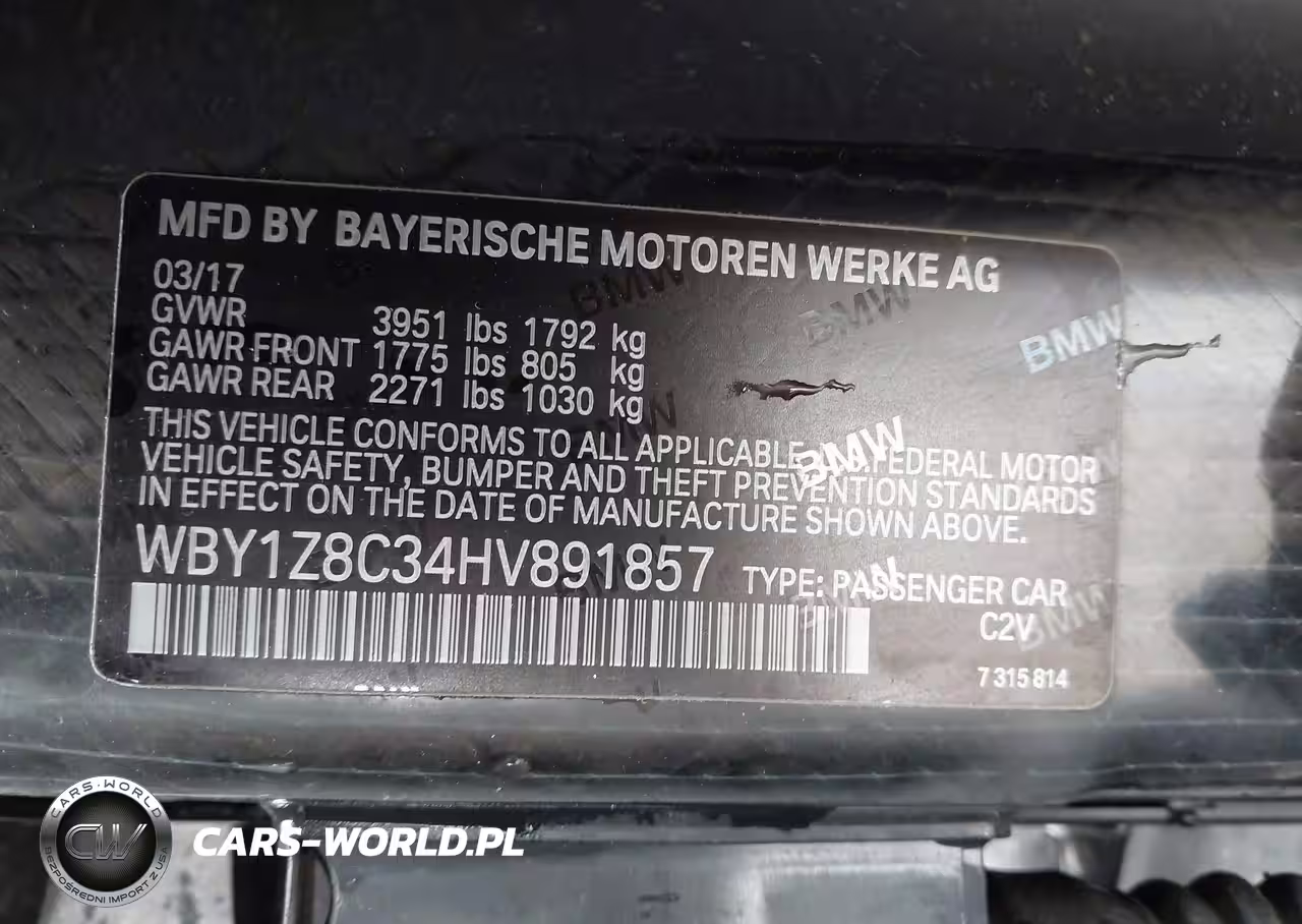 IAAI Nr: I-44727193 VIN: WBY1Z8C34HV891857 Port: Indianapolis, IN