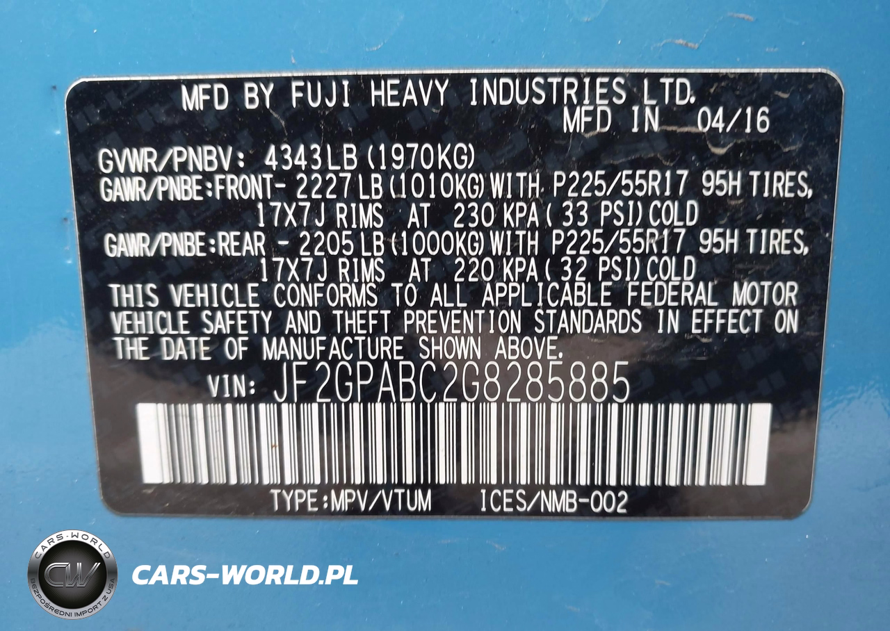 IAAI Nr: I-44727445 VIN: JF2GPABC2G8285885 Port: Los Angeles, CA