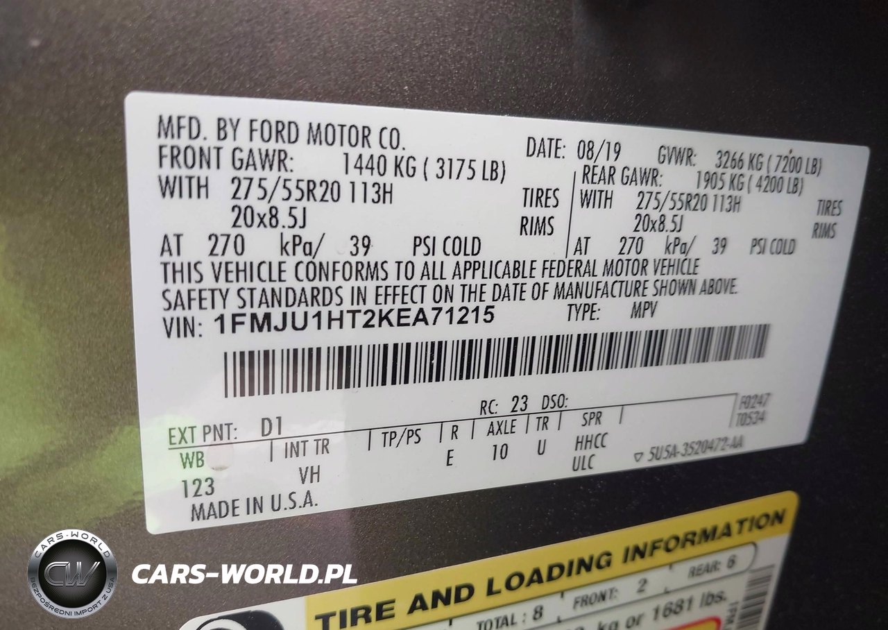 IAAI Nr: I-44727615 VIN: 1FMJU1HT2KEA71215 Port: Savannah, GA