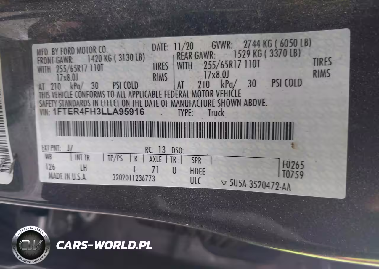IAAI Nr: I-44727842 VIN: 1FTER4FH3LLA95916 Port: Elizabeth, NJ