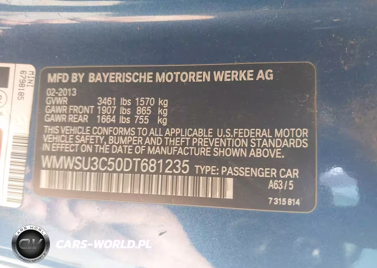 IAAI Nr: I-44727971 VIN: WMWSU3C50DT681235 Port: Houston, TX