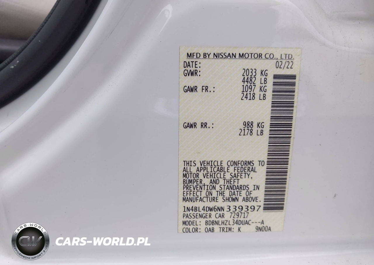 IAAI Nr: I-44728083 VIN: 1N4BL4DW6NN339397 Port: Elizabeth, NJ