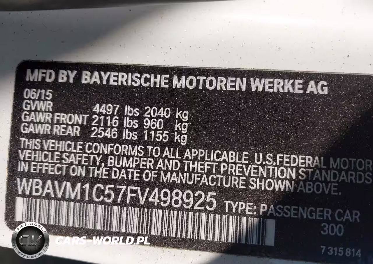 IAAI Nr: I-44728318 VIN: WBAVM1C57FV498925 Port: Savannah, GA