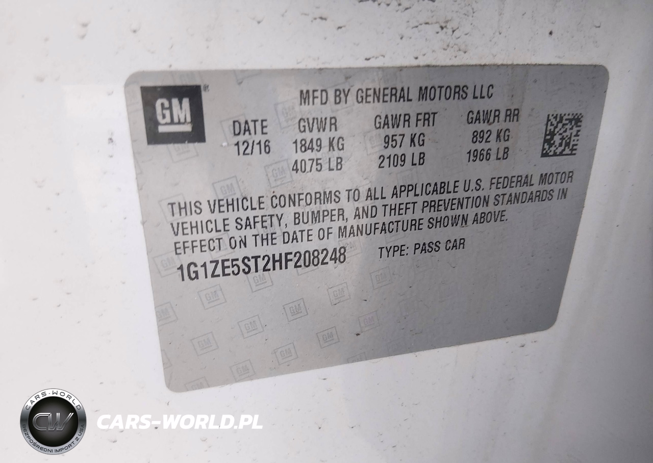IAAI Nr: I-44728565 VIN: 1G1ZE5ST2HF208248 Port: Elizabeth, NJ