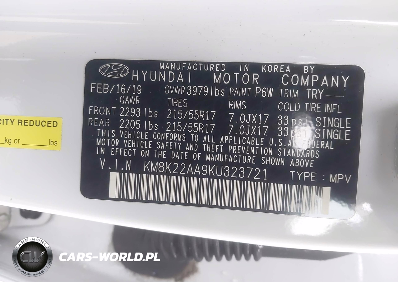 IAAI Nr: I-44728572 VIN: KM8K22AA9KU323721 Port: Los Angeles, CA