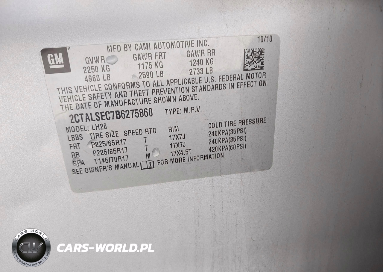 IAAI Nr: I-44728910 VIN: 2CTALSEC7B6275860 Port: Savannah, GA