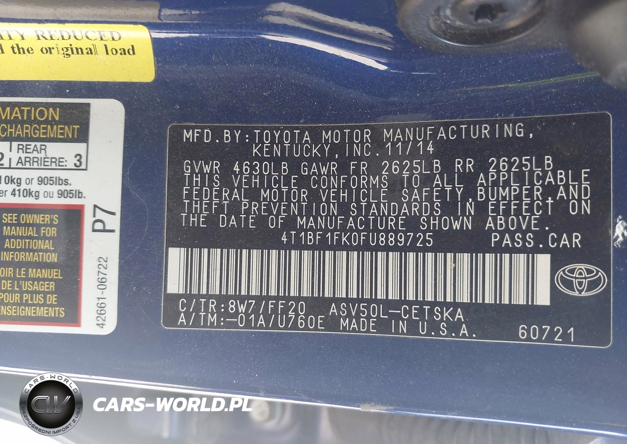 IAAI Nr: I-44729087 VIN: 4T1BF1FK0FU889725 Port: Houston, TX