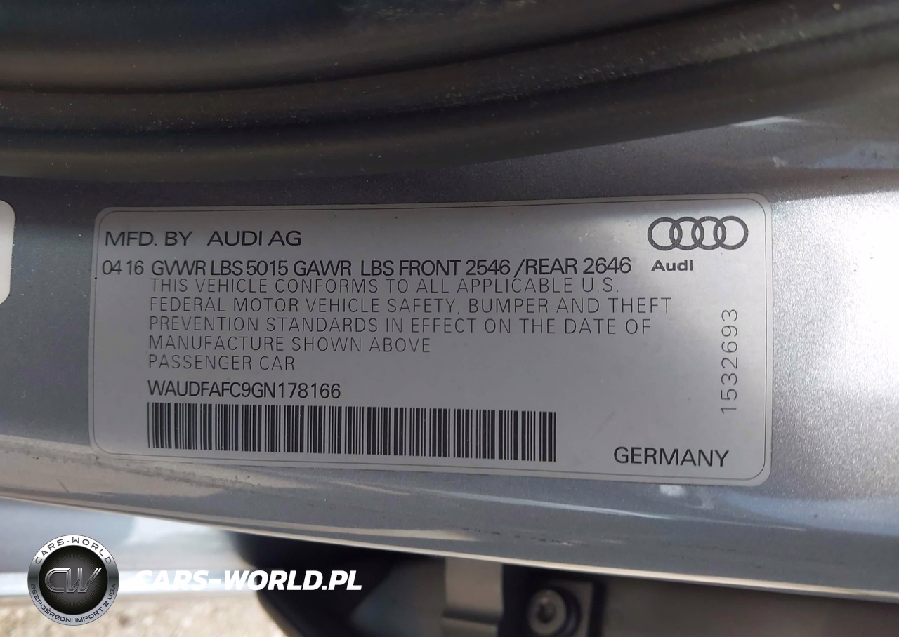 IAAI Nr: I-44730170 VIN: WAUDFAFC9GN178166 Port: Los Angeles, CA