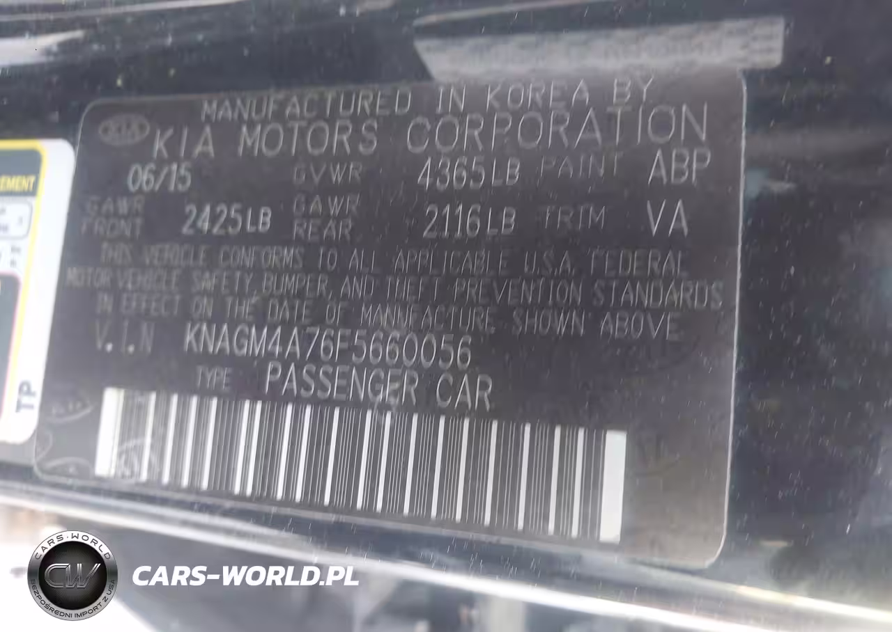IAAI Nr: I-44731244 VIN: KNAGM4A76F5660056 Port: Savannah, GA