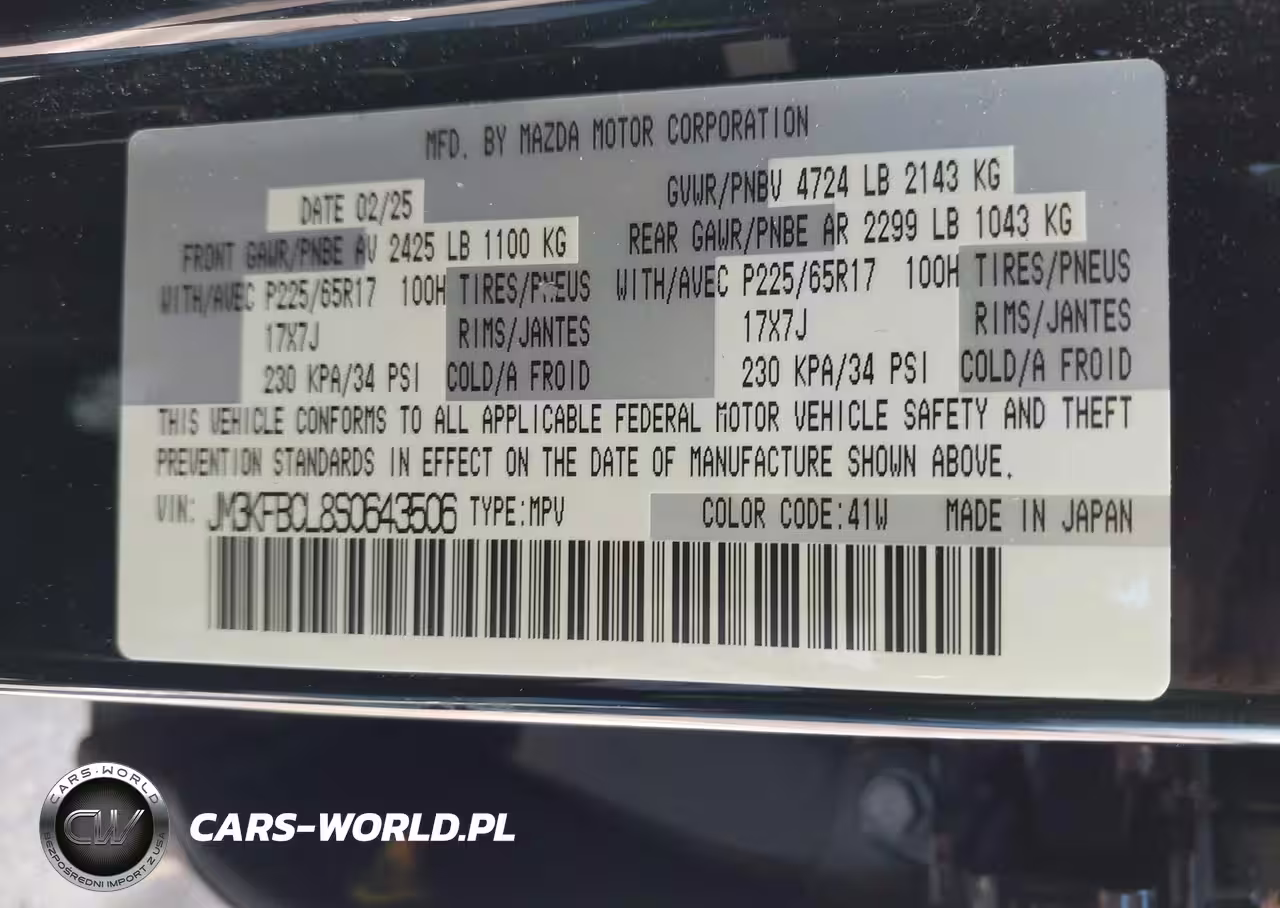 IAAI Nr: I-44731273 VIN: JM3KFBCL8S0643506 Port: Savannah, GA
