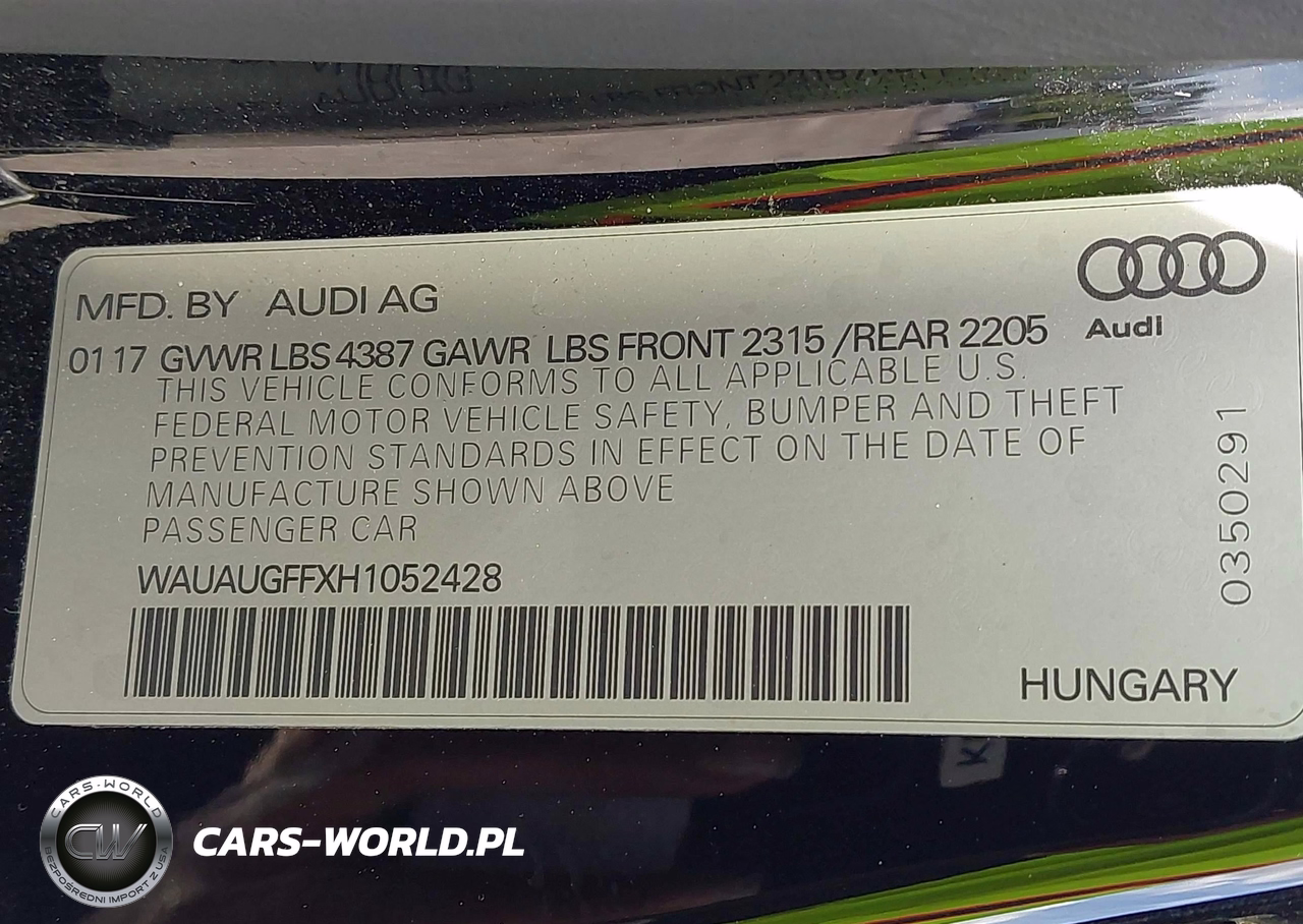IAAI Nr: I-44731785 VIN: WAUAUGFFXH1052428 Port: Savannah, GA