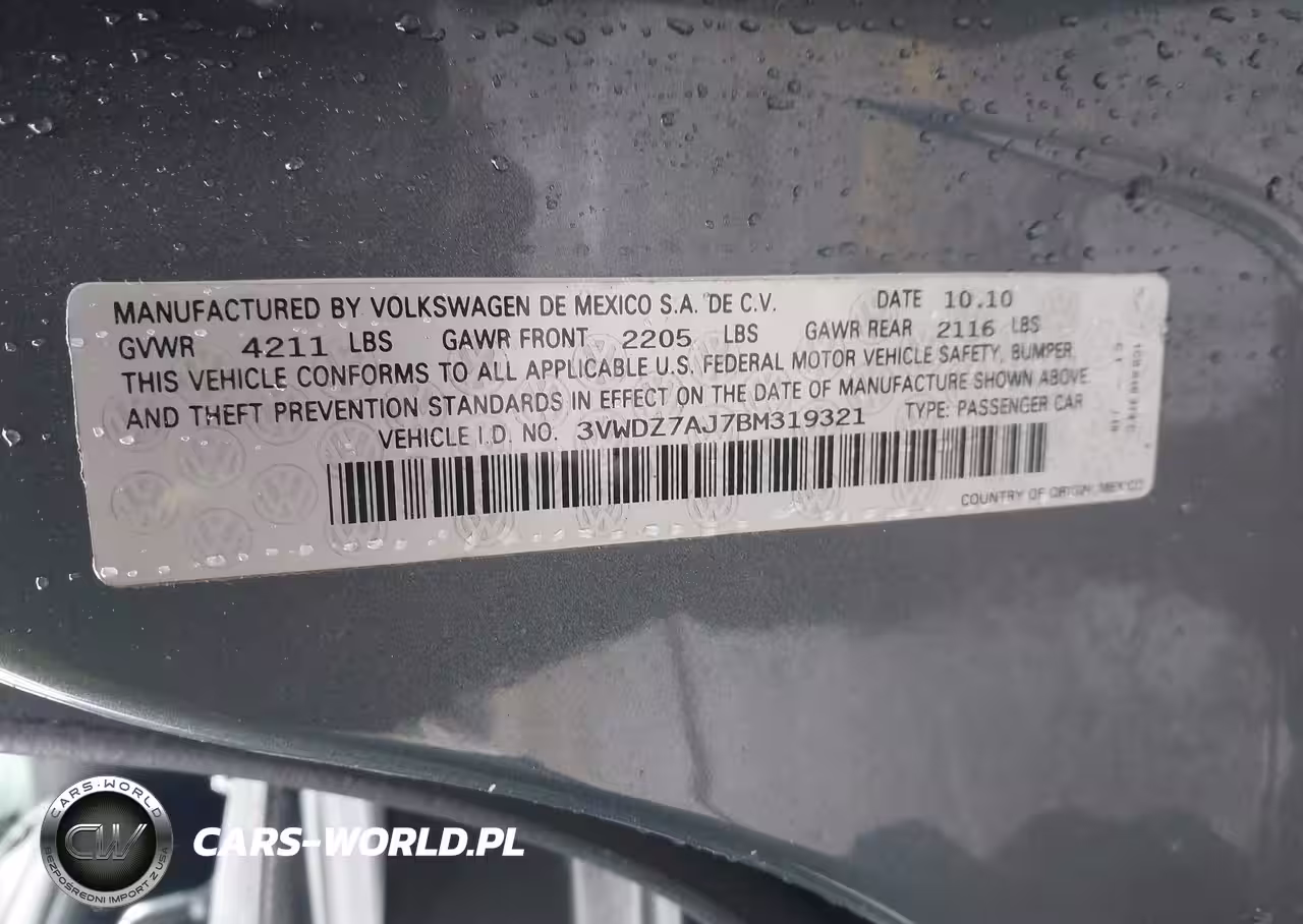 IAAI Nr: I-44731976 VIN: 3VWDZ7AJ7BM319321 Port: Elizabeth, NJ