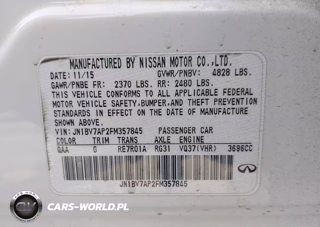 IAAI Nr: I-44732331 VIN: JN1BV7AP2FM357845 Port: Los Angeles, CA