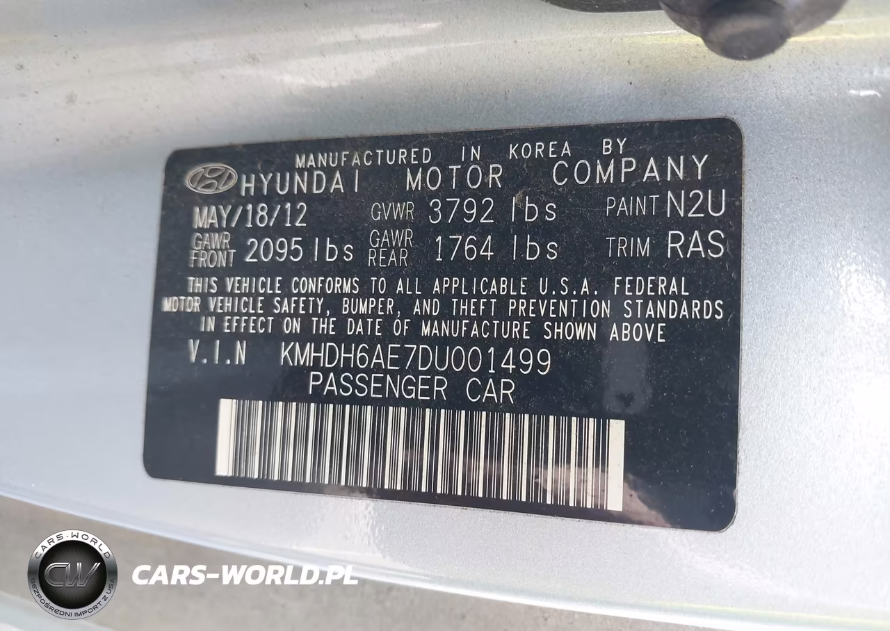 IAAI Nr: I-44732380 VIN: KMHDH6AE7DU001499 Port: Savannah, GA