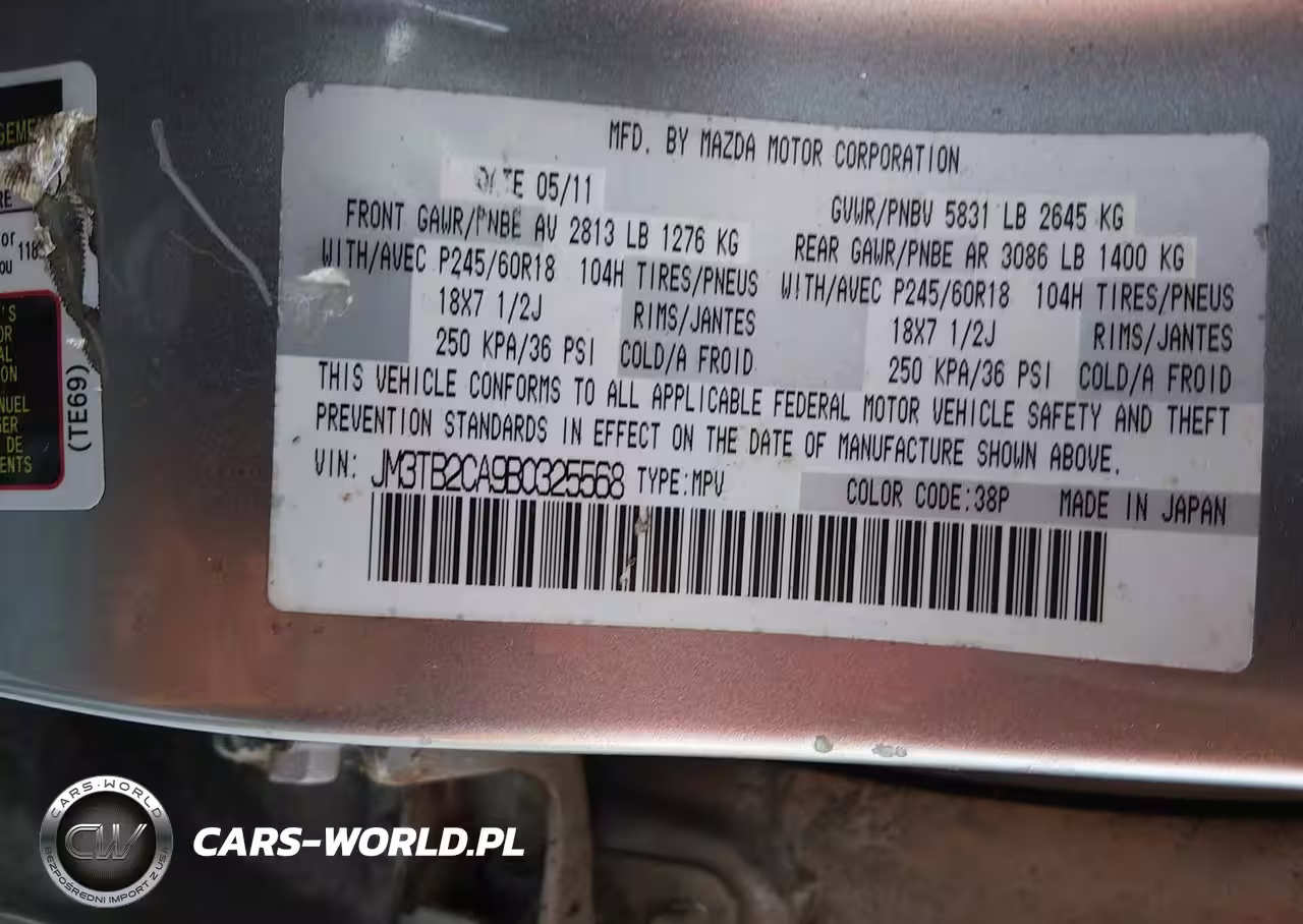IAAI Nr: I-44733849 VIN: JM3TB2CA9B0325568 Port: Indianapolis, IN