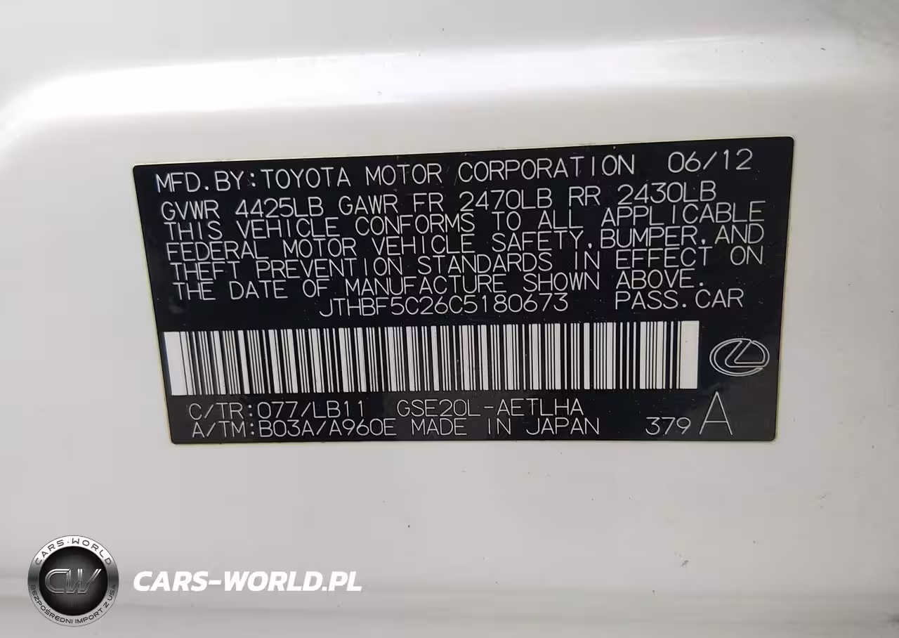 IAAI Nr: I-44733887 VIN: JTHBF5C26C5180673 Port: Houston, TX