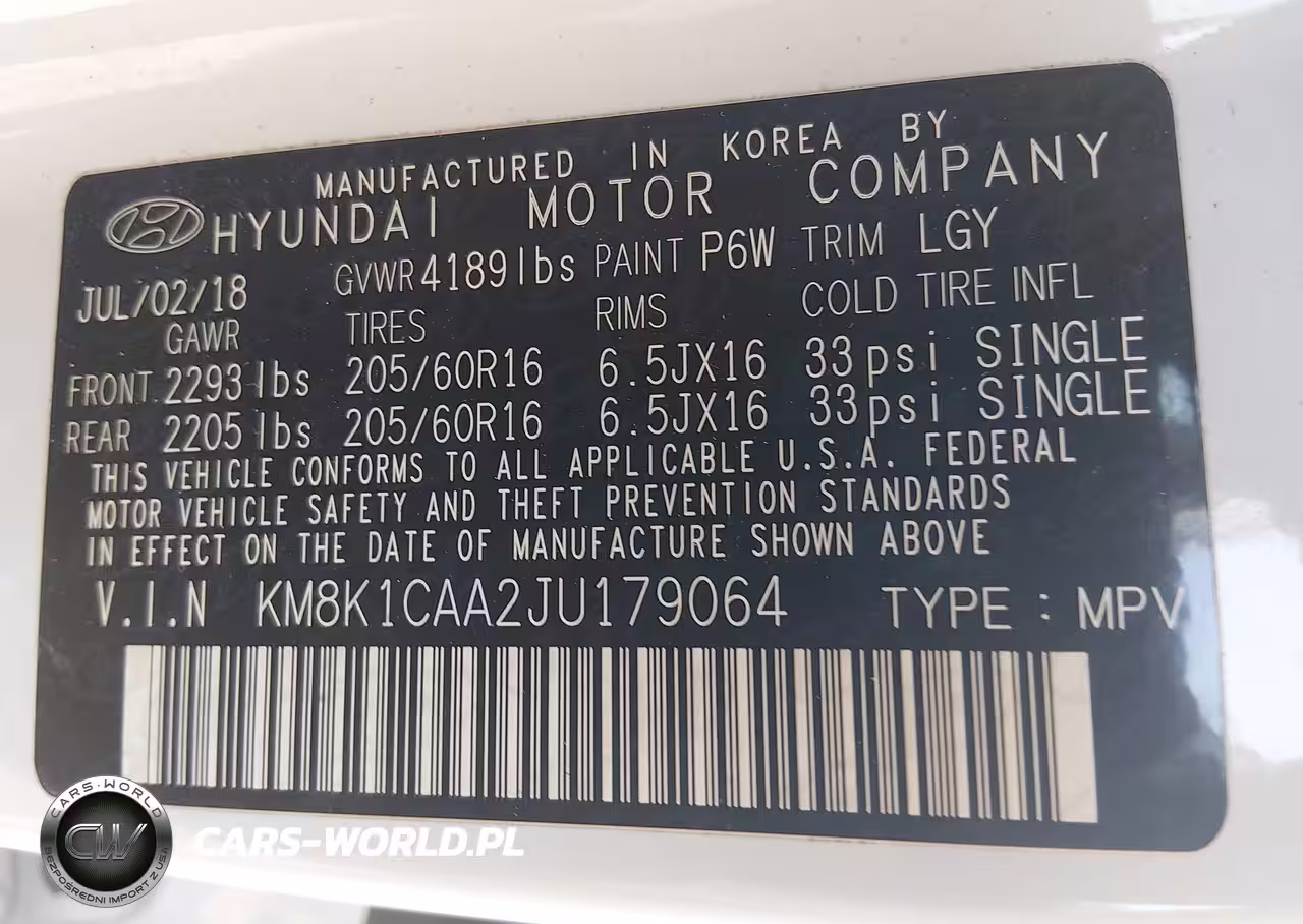 IAAI Nr: I-44734047 VIN: KM8K1CAA2JU179064 Port: Elizabeth, NJ