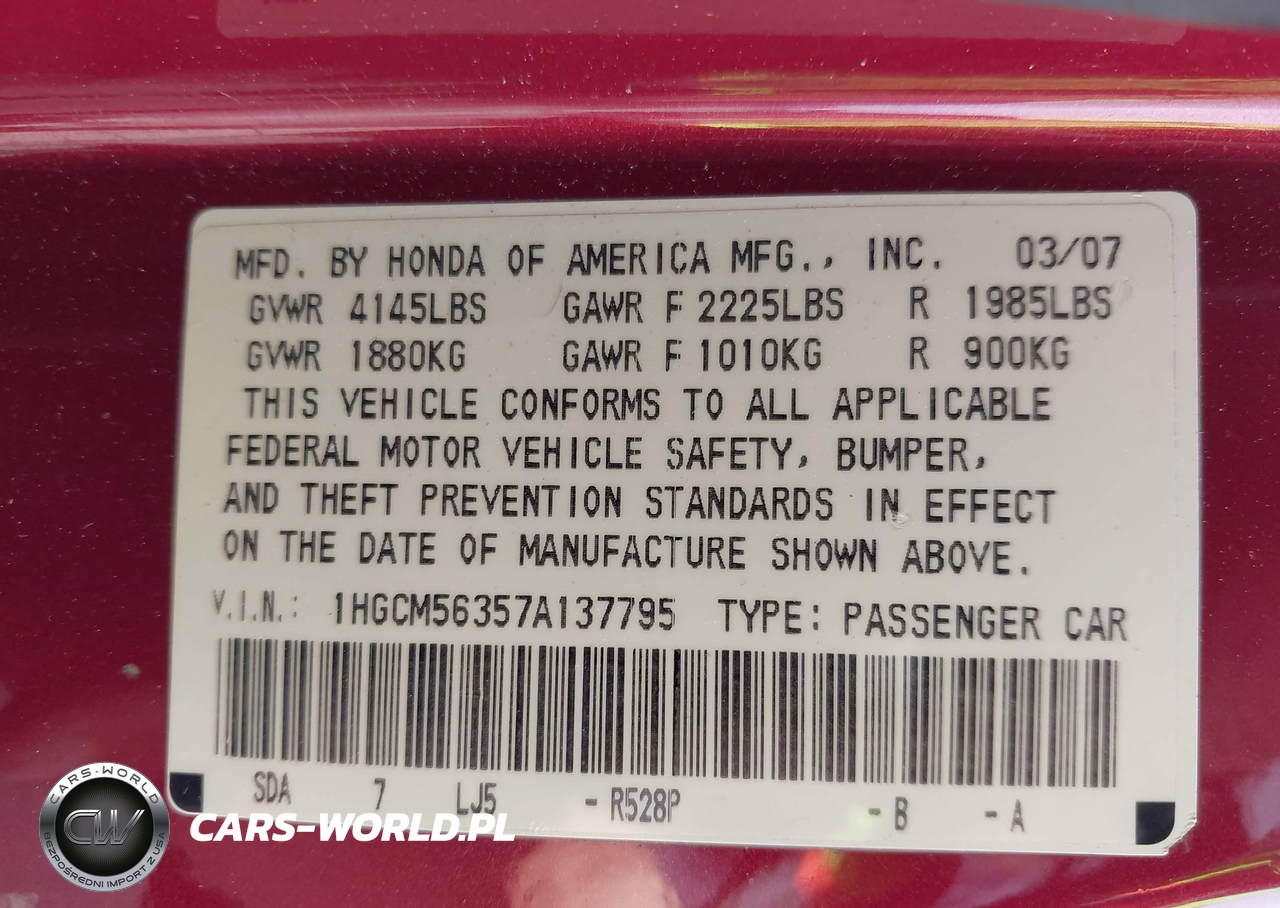 IAAI Nr: I-44734220 VIN: 1HGCM56357A137795 Port: Los Angeles, CA