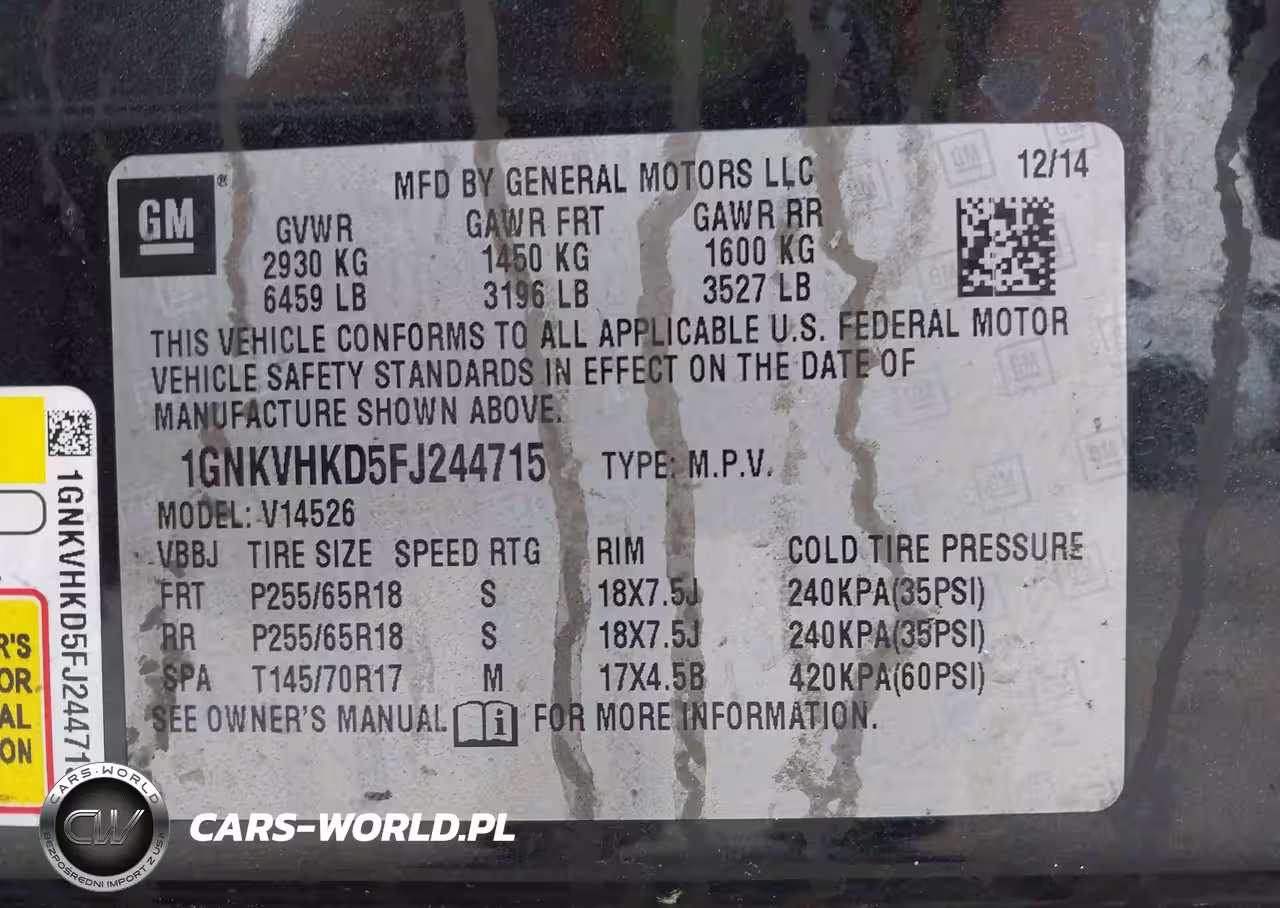 IAAI Nr: I-44734315 VIN: 1GNKVHKD5FJ244715 Port: Elizabeth, NJ