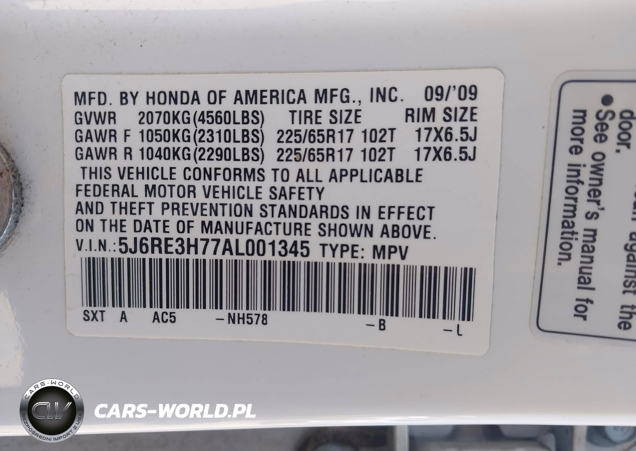 IAAI Nr: I-44734397 VIN: 5J6RE3H77AL001345 Port: Houston, TX