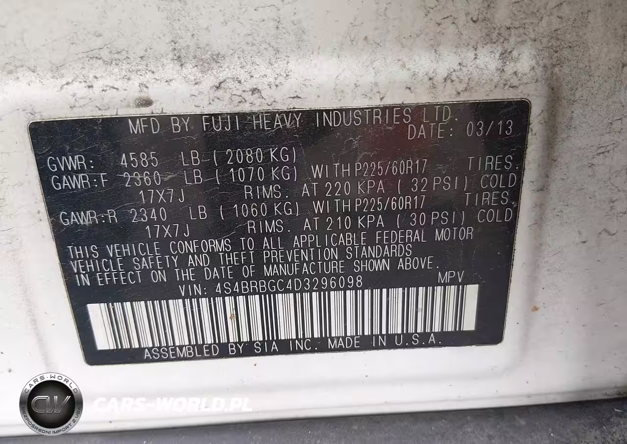 IAAI Nr: I-44735003 VIN: 4S4BRBGC4D3296098 Port: Indianapolis, IN
