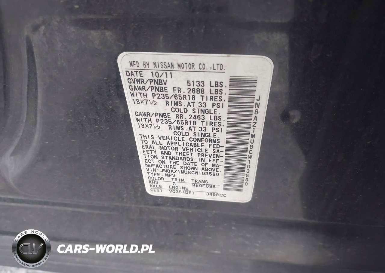 IAAI Nr: I-44735092 VIN: JN8AZ1MU8CW103590 Port: Savannah, GA