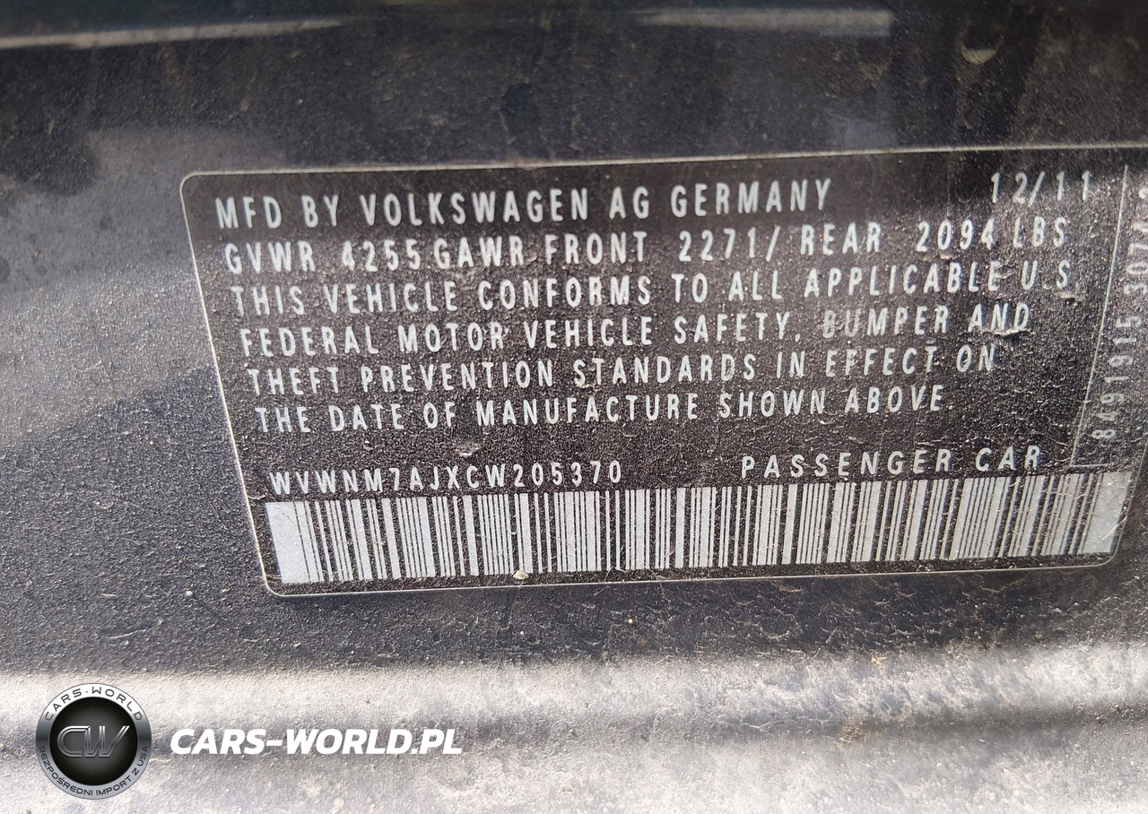 IAAI Nr: I-44735217 VIN: WVWNM7AJXCW205370 Port: Elizabeth, NJ