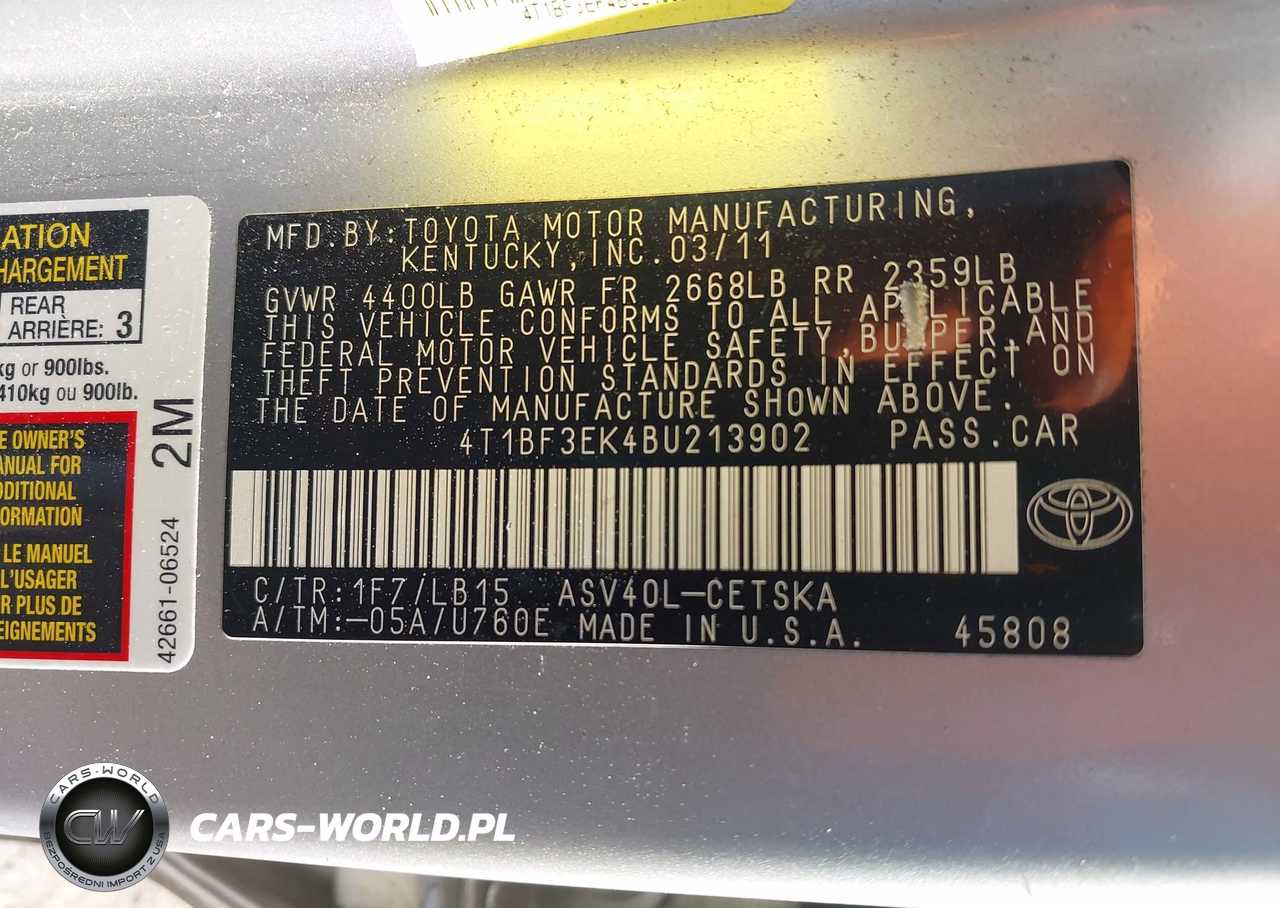 IAAI Nr: I-44735336 VIN: 4T1BF3EK4BU213902 Port: Elizabeth, NJ