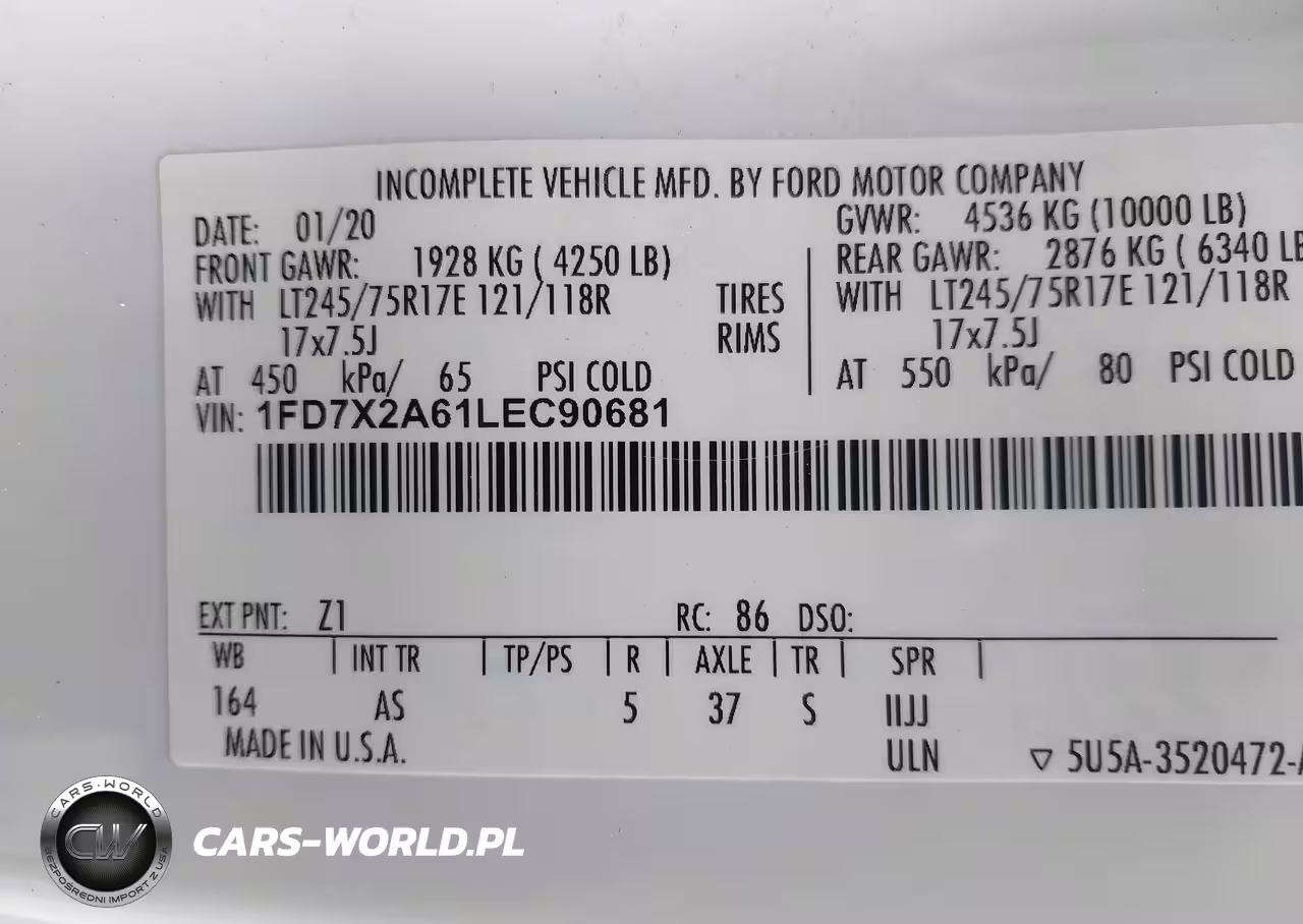 IAAI Nr: I-44735455 VIN: 1FD7X2A61LEC90681 Port: Los Angeles, CA