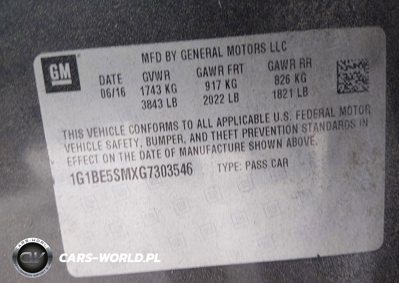 IAAI Nr: I-44735822 VIN: 1G1BE5SMXG7303546 Port: Savannah, GA