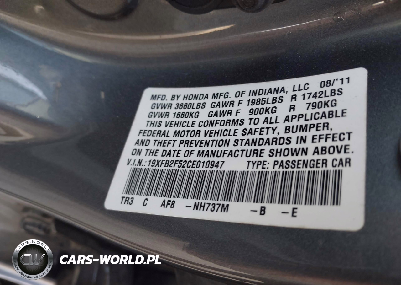 IAAI Nr: I-44735848 VIN: 19XFB2F52CE010947 Port: Savannah, GA