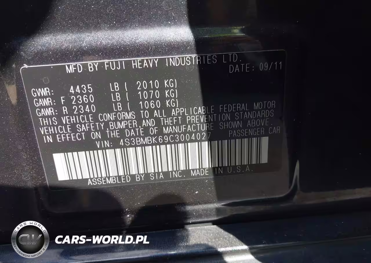 IAAI Nr: I-44735855 VIN: 4S3BMBK69C3004027 Port: Savannah, GA