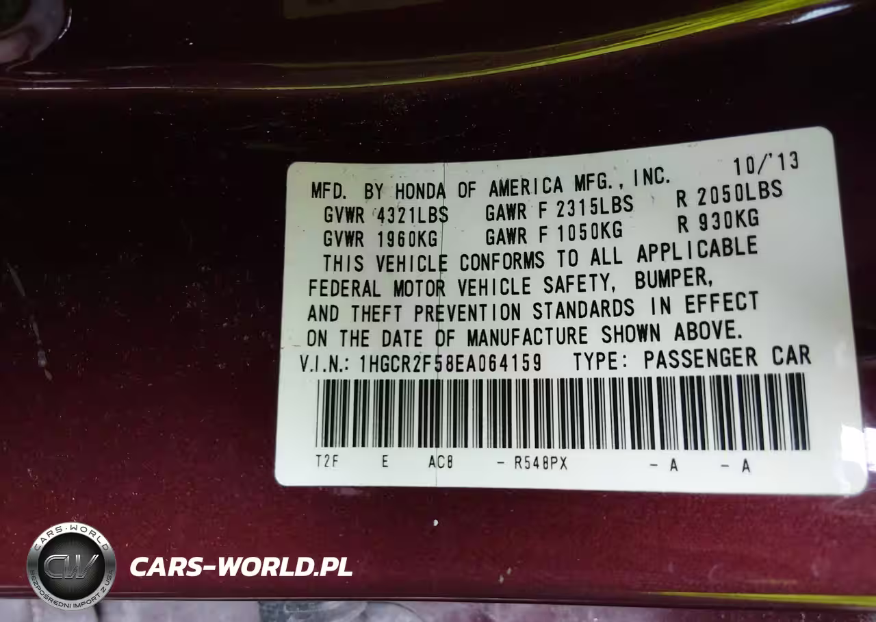IAAI Nr: I-44735913 VIN: 1HGCR2F58EA064159 Port: Savannah, GA