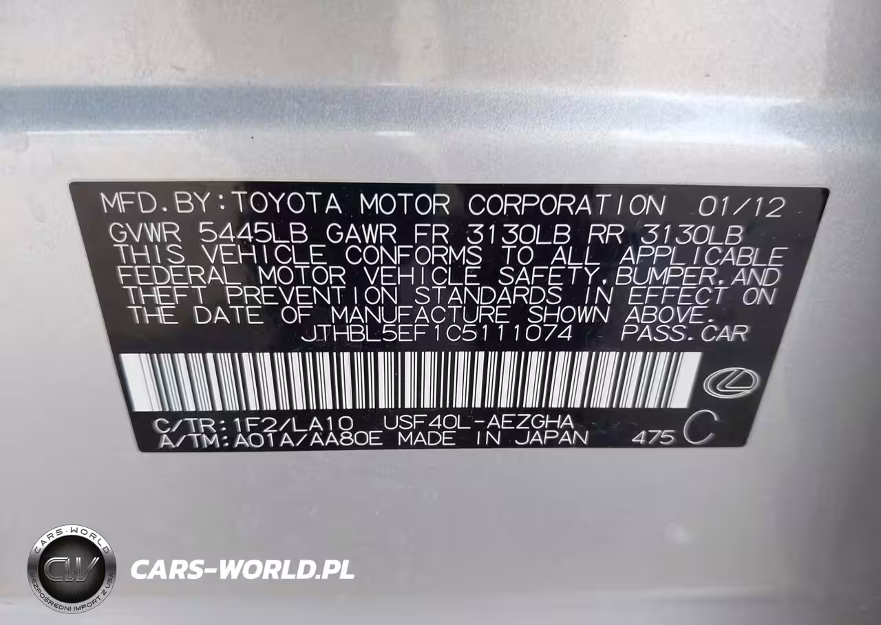 IAAI Nr: I-44736494 VIN: JTHBL5EF1C5111074 Port: Los Angeles, CA