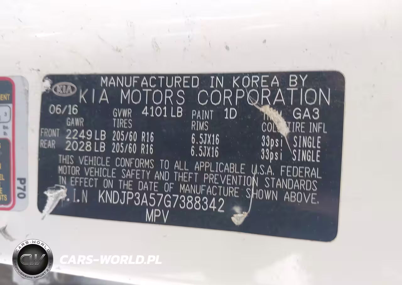 IAAI Nr: I-44736873 VIN: KNDJP3A57G7388342 Port: Los Angeles, CA