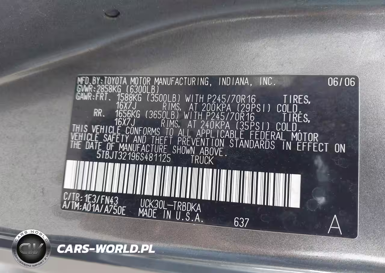 IAAI Nr: I-44737100 VIN: 5TBJT32196S481125 Port: Los Angeles, CA
